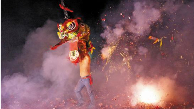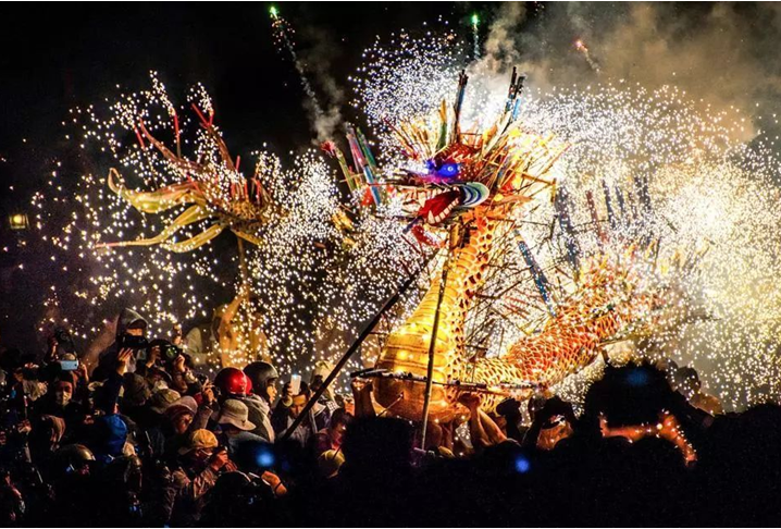 3、英德大湾舞火麒麟闹元宵