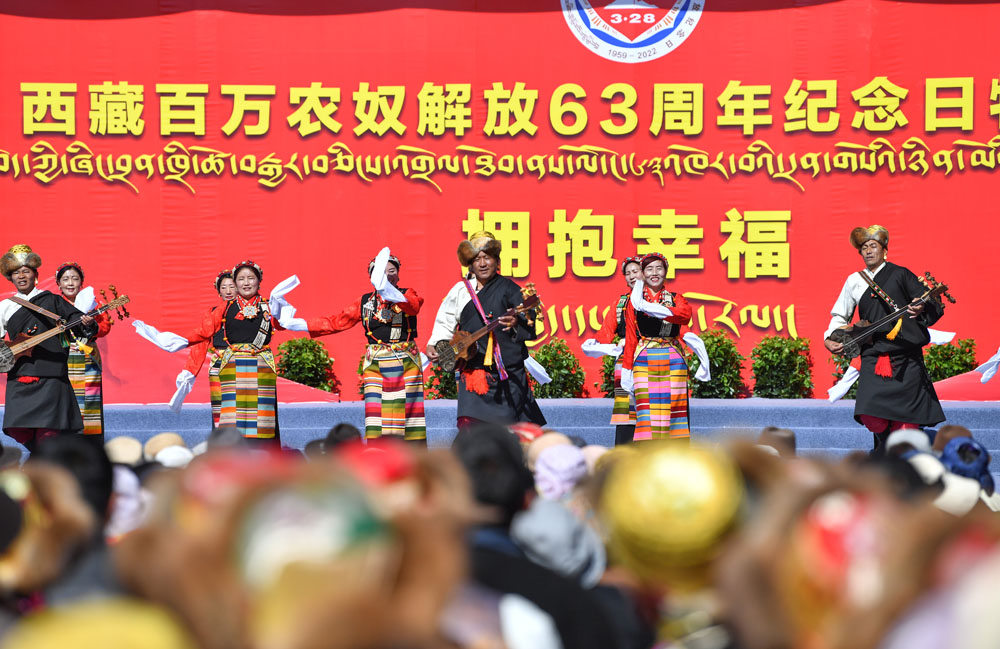 3月25日,纪念西藏百万农奴解放63周年特别节目《拥抱幸福》在西藏拉萨上演。(图片来源:新华社)