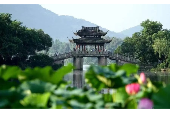 西湖山水文因景生,景借文传。湖光山色交相辉映,在历代丰厚文化的不断沉淀下,西湖山水与堤岛、桥涵、亭台、楼阁等,交融渗透,人文荟萃,高度契合了中国传统美学“天人合一”的思想。