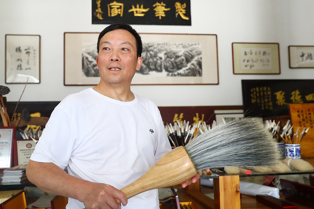 “小时候做毛笔是为了糊口,现在我做毛笔是为了把这门传统技艺传承下去,把中华文化传播出去。”
