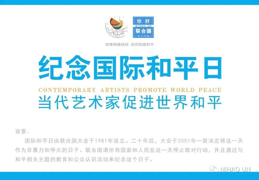 鉴于此,为纪念“国际和平日”创立20周年,“你好联合国NIHAO UN”组织举办“纪念国际和平日·当代艺术家促进世界和平”主题展,以文化艺术传颂唯美精神和友善灵魂的方式,参与到世界特别日子的特别事件之中。