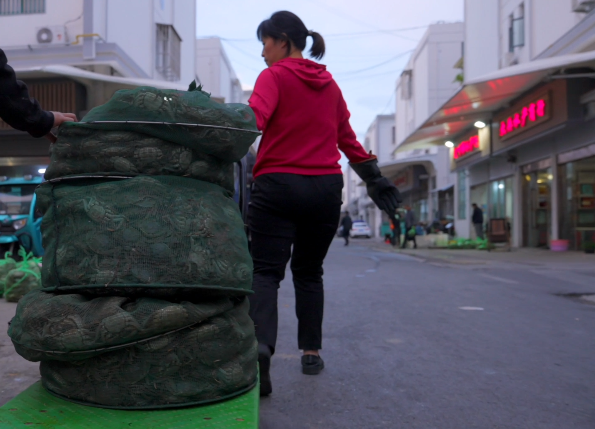来自洪泽区洪祥村一位叫杨俊如的螃蟹养殖户,他送来的螃蟹是公认的高品质。“去年养螃蟹赚了靠35万。今年感觉会更多!”杨俊如就是退捕上岸的这批渔民之一。赶完早市,他便骑上电瓶车,回到家中休息。“在他身上,我几乎察觉不出渔民的气息。”亚当说,“现在他是个日子过得红红火火的岸上人。”