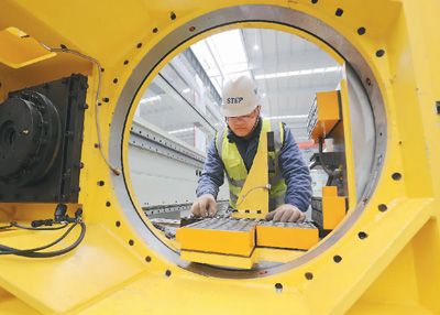 位于浙江省湖州市德清县雷甸镇的浙江鼎力机械股份有限公司五期“未来工厂”,工人在调试智能化生产线。