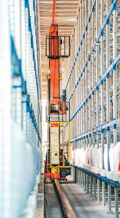 江西省新余市高新区锂电新能源产业园赣锋锂业的车间内,转运机器人、堆垛机器人等在智能程序下执行打托备货工序。