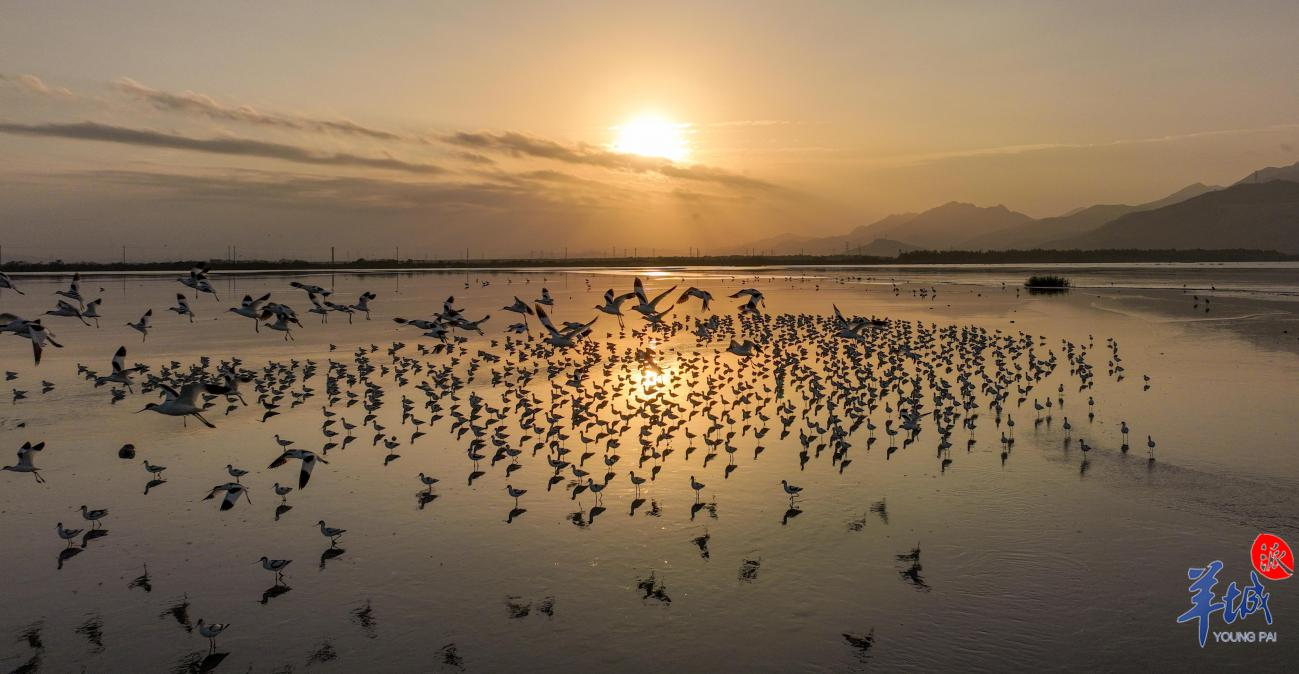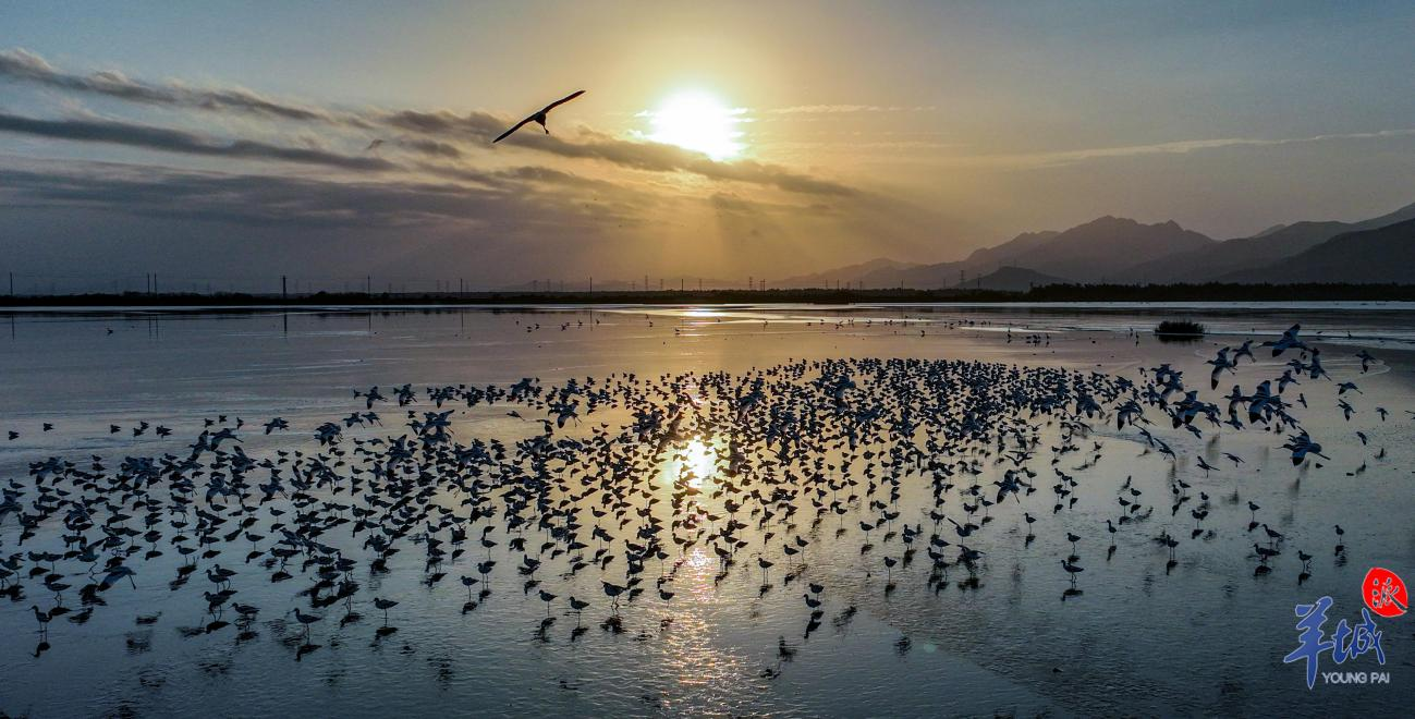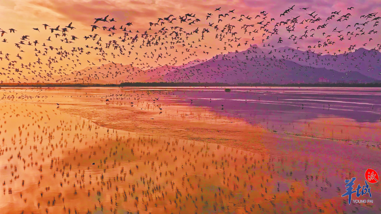 寻一个日落,去邂逅飞舞的水鸟与绝美日光。
