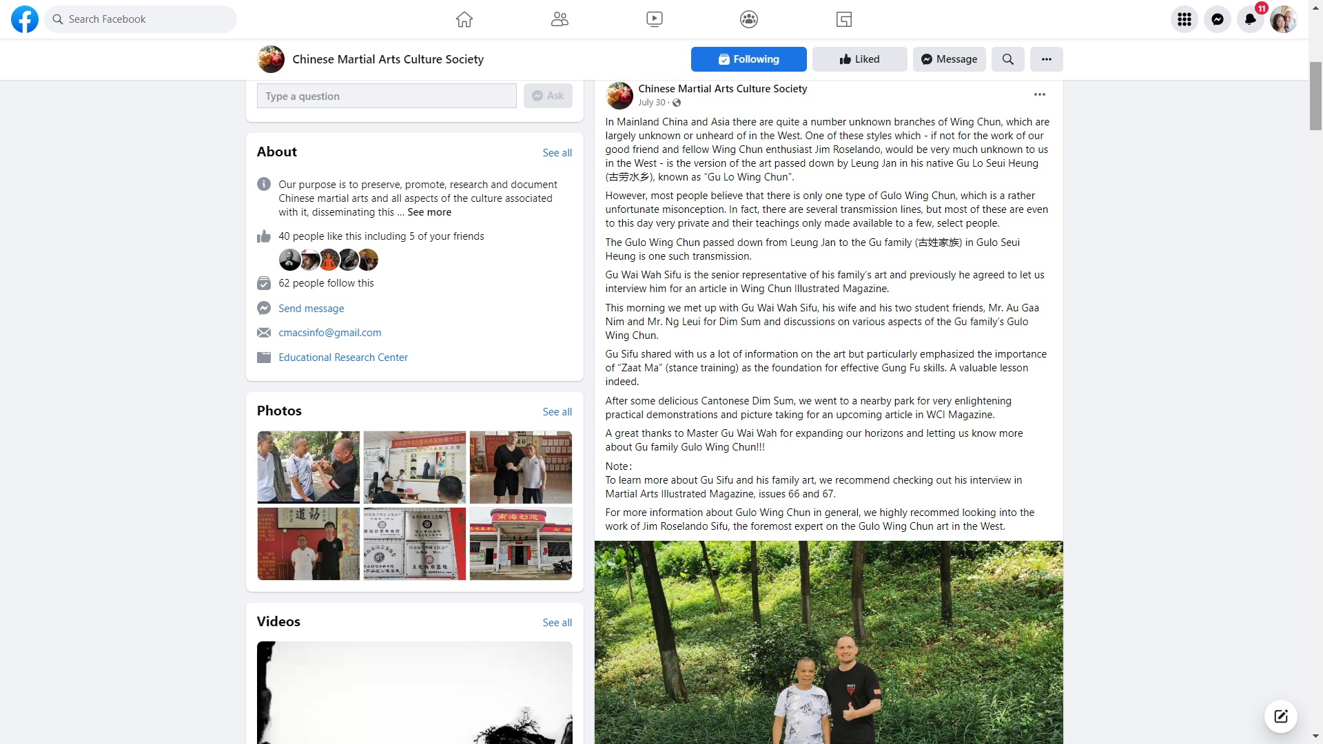 龙奕诚和妻子在Facebook主页介绍古劳咏春师傅古维华
