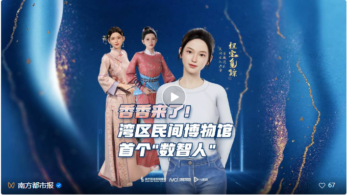 “她”来了!南方都市报、N视频的新主播也是湾区民间博物馆首个“数智人”