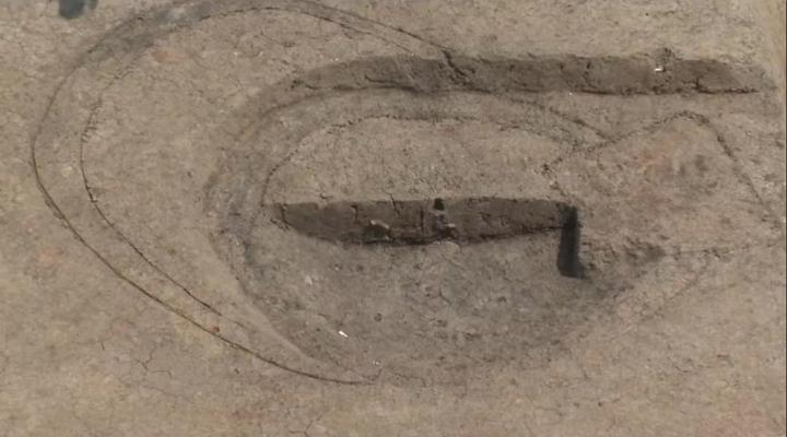 现场,记者还发现地面上留下了无数道长长的痕迹。余官玥告诉记者,从现在发现的范围来看,这里有植物铺垫过,东西长度超过了20米,南北宽度到达探方边缘已经超过10米,无论它是房址或是其他建筑物,它的规模都相当惊人。