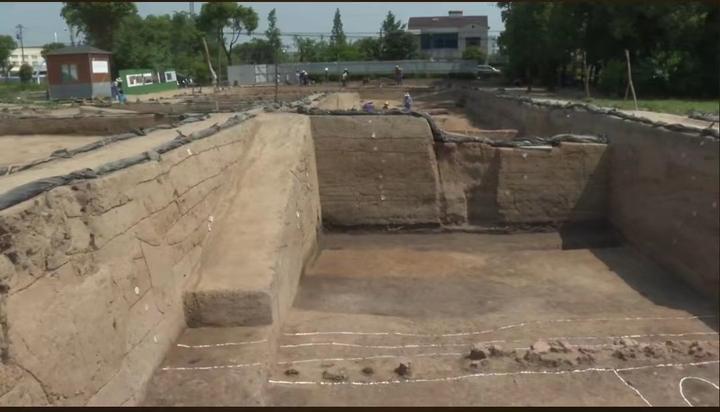 在探方墙壁上的土有很明显的黄色和黑色的分界线,黑色的地面就是崧泽人生活的地面,黄色地面就是良渚人生活的地面。