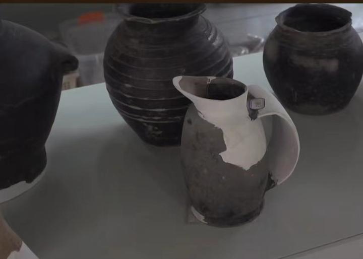 “如果非要说跟酒有关,我感觉这种宽把杯可能更适合作酒器。再比如说这种良渚时期的陶鬶,它的下面是三个袋下面有三个袋形的足,可能是一种温酒器。”陈钰告诉记者:“这里的陶鬶做得特别漂亮,你看它们像不像一个人昂着头,很神气地站在那里?很有生气,特别形象。陶鬶做成袋足比底下是整个一个圆底的好处是受火面积要大好多,可以更快加热。在寺墩遗址,出土的陶鬶数量大、形制多,是寺墩遗址良渚文化的代表性器物之一。”