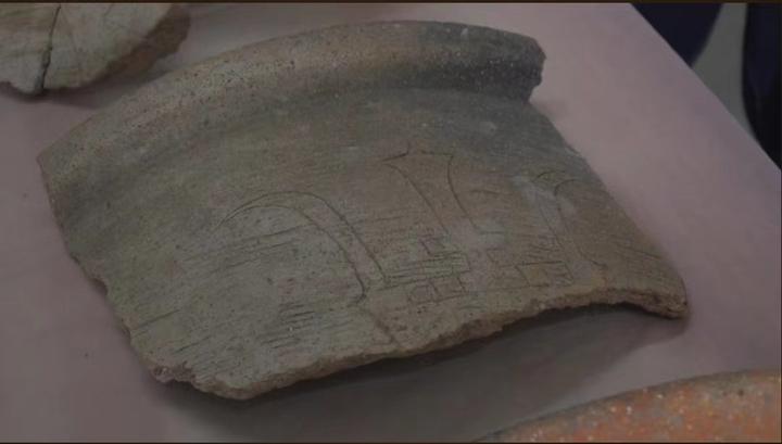 “这片红烧土可以很直观地展示当时的‘木骨泥墙’工艺。这上面的凹槽就是植物的茎杆的痕迹,当时的人以植物茎杆作为骨架,在两侧糊上泥,做成土墙。但是这样的土墙并不结实,很容易被雨水泡软、冲塌,因此人们会在墙边和地面堆上柴火,放火烧烤,让它变得坚固。墙体建好后,人们再搭建屋顶,铺上茅草,房子的主体就盖好了。”于成龙说。