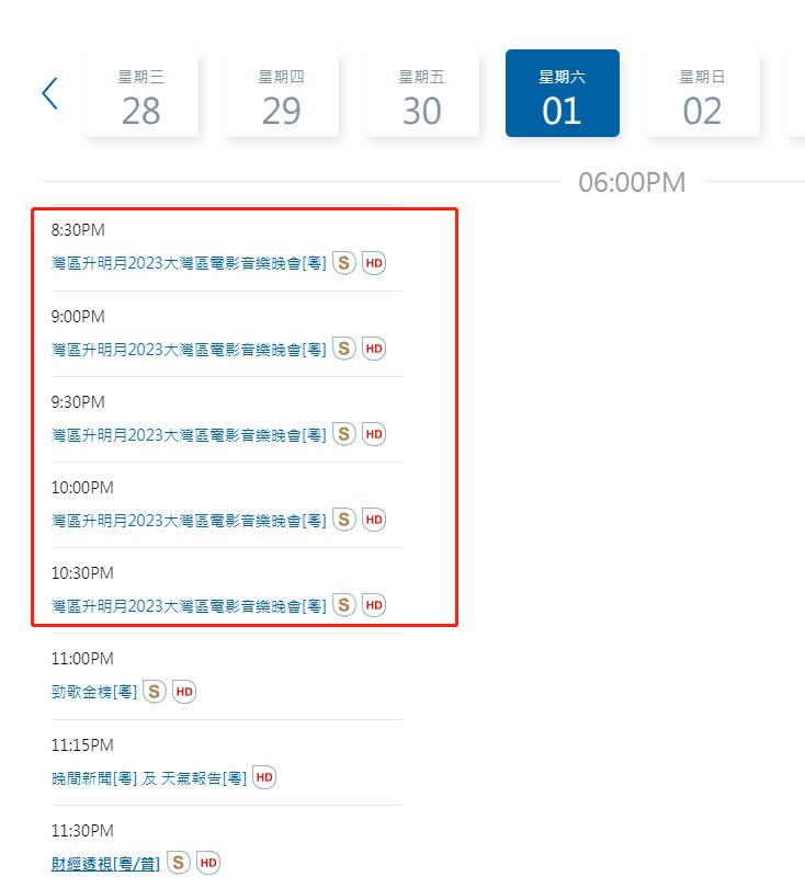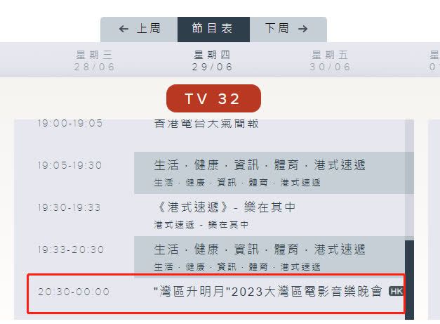 據香港電台及TVB官網節目表,香港電台將於明晚(29日)20:30直播,TVB將於7月1日晚20:30錄播。