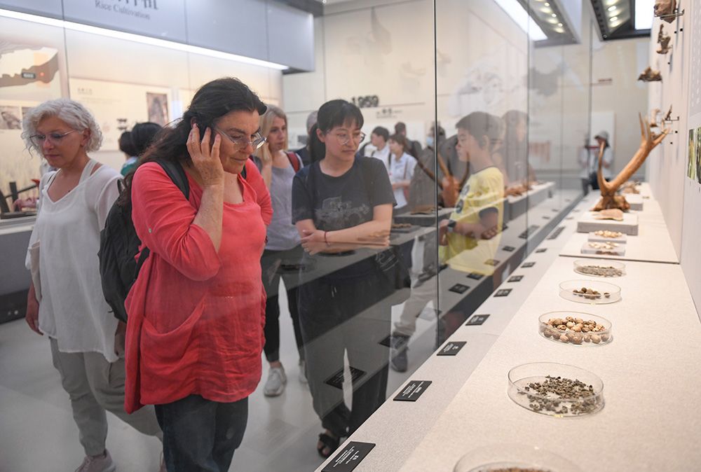 7月5日,在良渚与世界——“良渚古城·雅典卫城”中希文明对话活动期间,多名来自希腊的嘉宾参访浙江杭州良渚古城遗址公园、老虎岭遗址、良渚博物院等地。(图片来源:中新社)