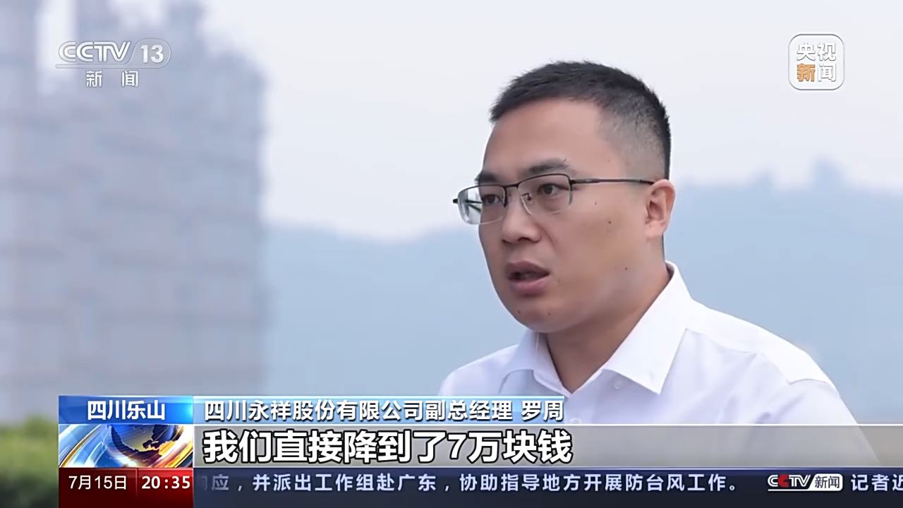 四川永祥股份有限公司副总经理 罗周:我们把当时的成本,从20多万元的生产成本,我们直接降到了7万块钱。到了我们的第8代工艺,生产成本能够降到4万以内,目前国际上他们的生产成本都比较高,他们普遍在9到10万,甚至10万出头一些的水平。