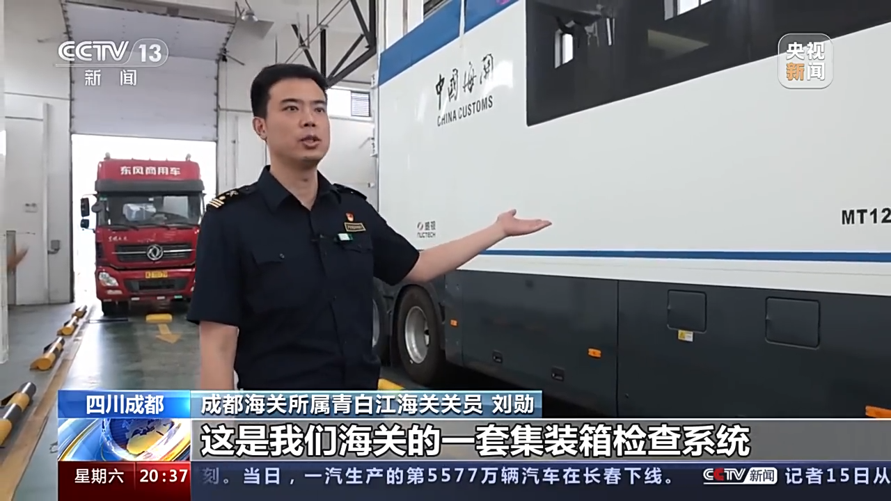 成都海关所属青白江海关关员 刘勋:这是我们海关的一套集装箱检查系统,如果通过人工查验的话,开箱、掏箱和装箱整个过程大概要花到3到4个小时,我们用这套系统三到五分钟之内就可以完成。