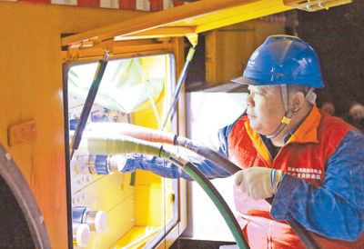 8月8日,黑龙江省牡丹江供电公司抢修人员在为10千伏级应急电源车连接线路。