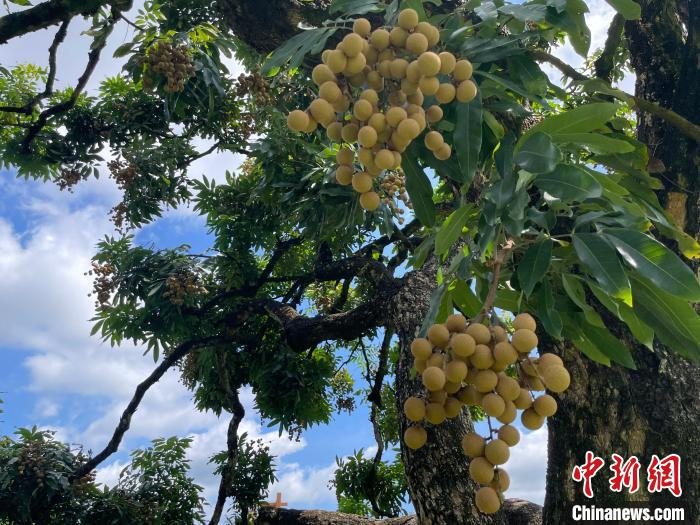 7月12日,广东省茂名市高州市分界镇储良村的储良龙眼母树挂满果实。 中新社记者蔡敏婕摄