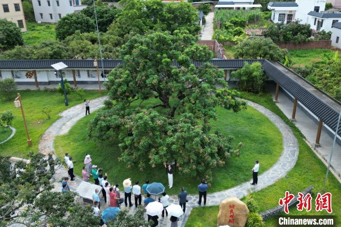 7月12日,广东省茂名市高州市分界镇储良村的储良龙眼母树吸引参观者。中新社记者陈楚红摄