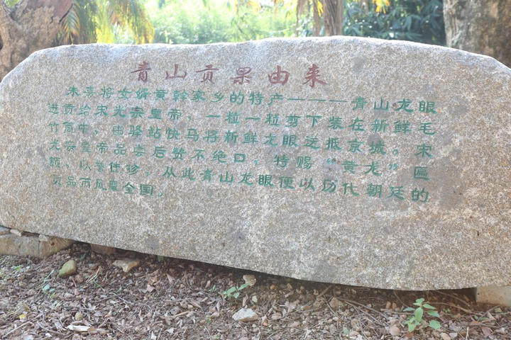 相传黄勉斋(朱熹的学生)去觐见宋光宗,将龙眼装进新鲜的竹筒中,再以泥土封上保鲜,几日后送达汴京,龙眼依旧新鲜可口。宋光宗品尝后大为赞赏,钦定为贡品,御赐的“黄龙”二字,如今正悬挂在青山村江夏黄氏祠堂内。