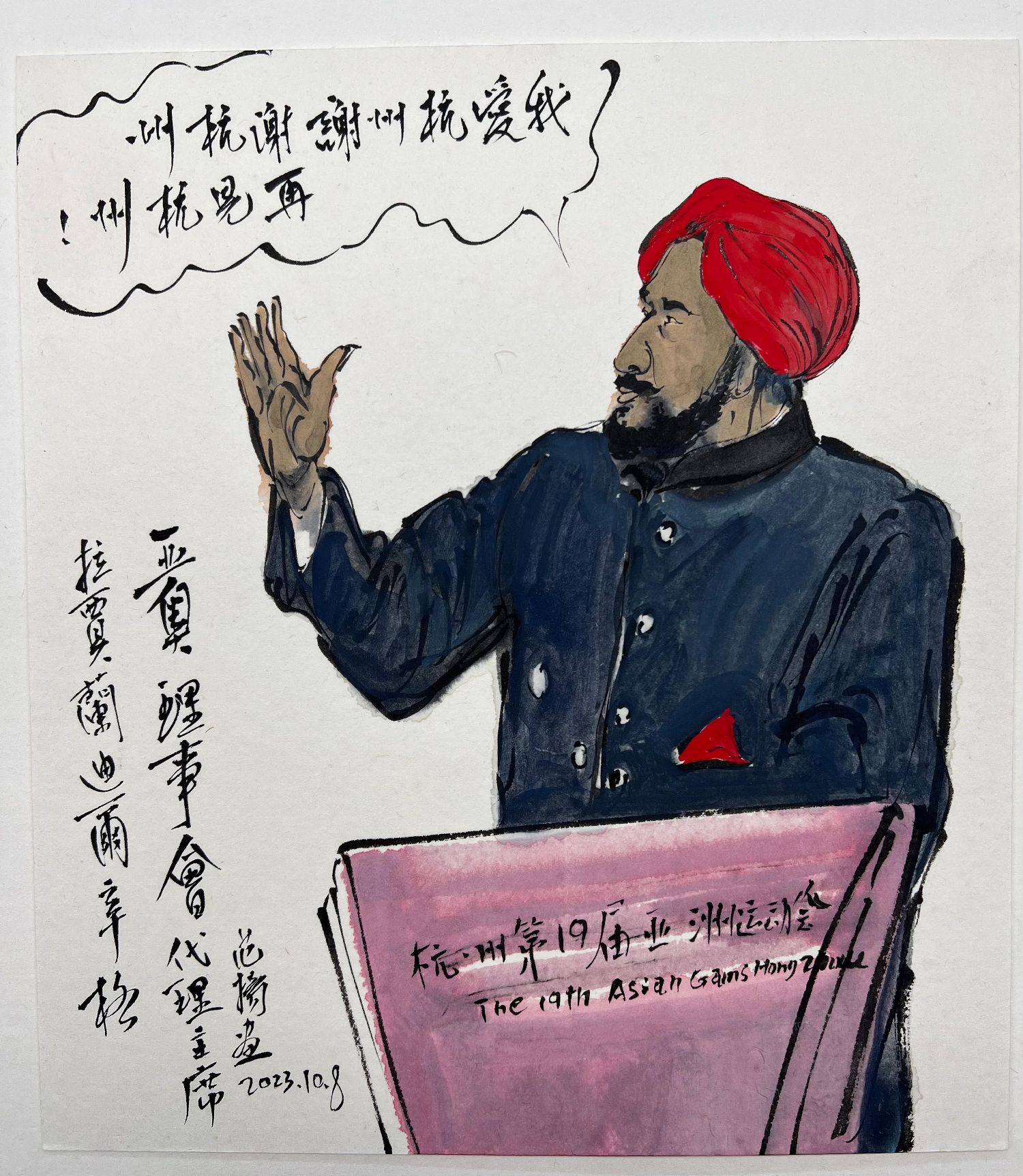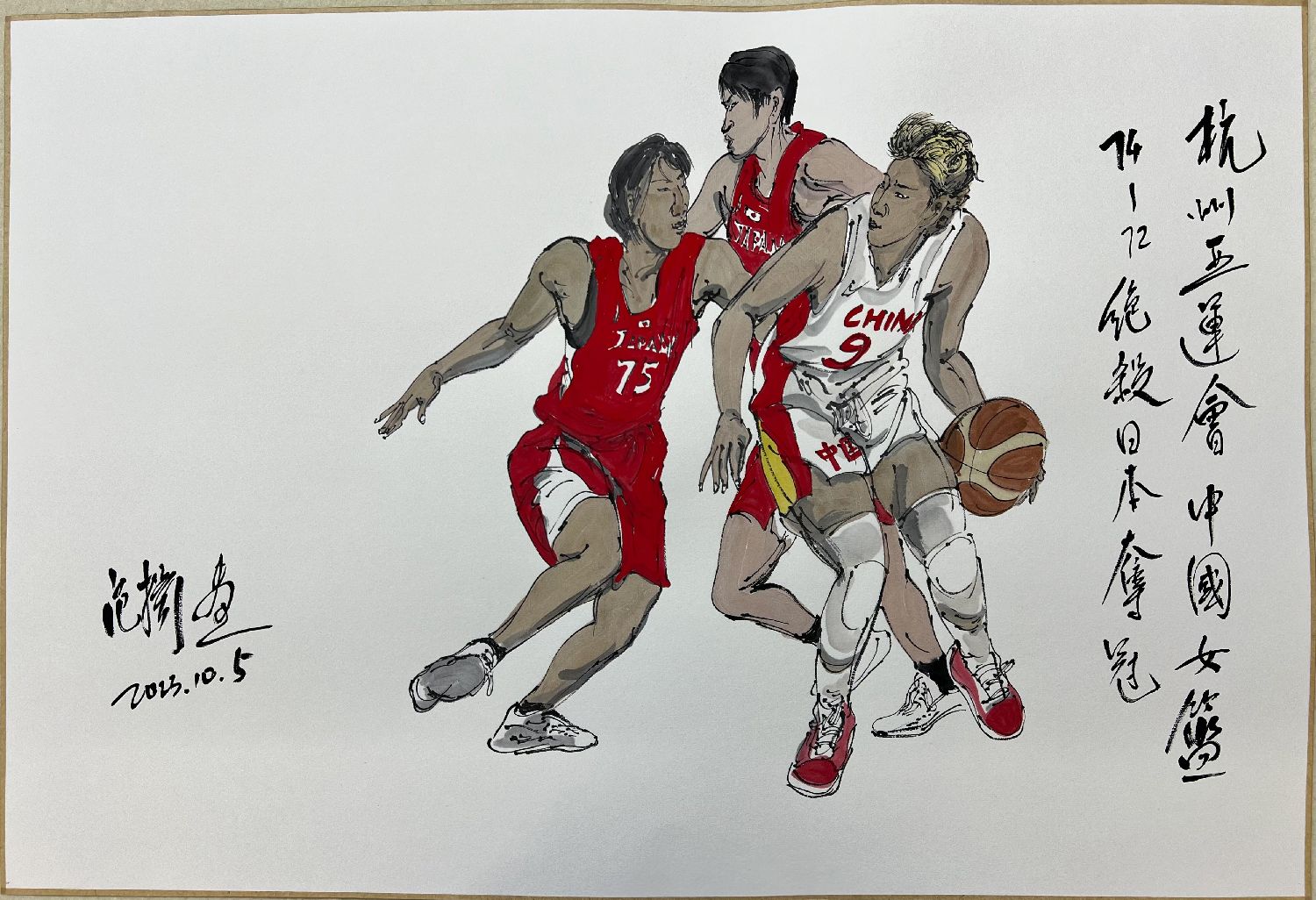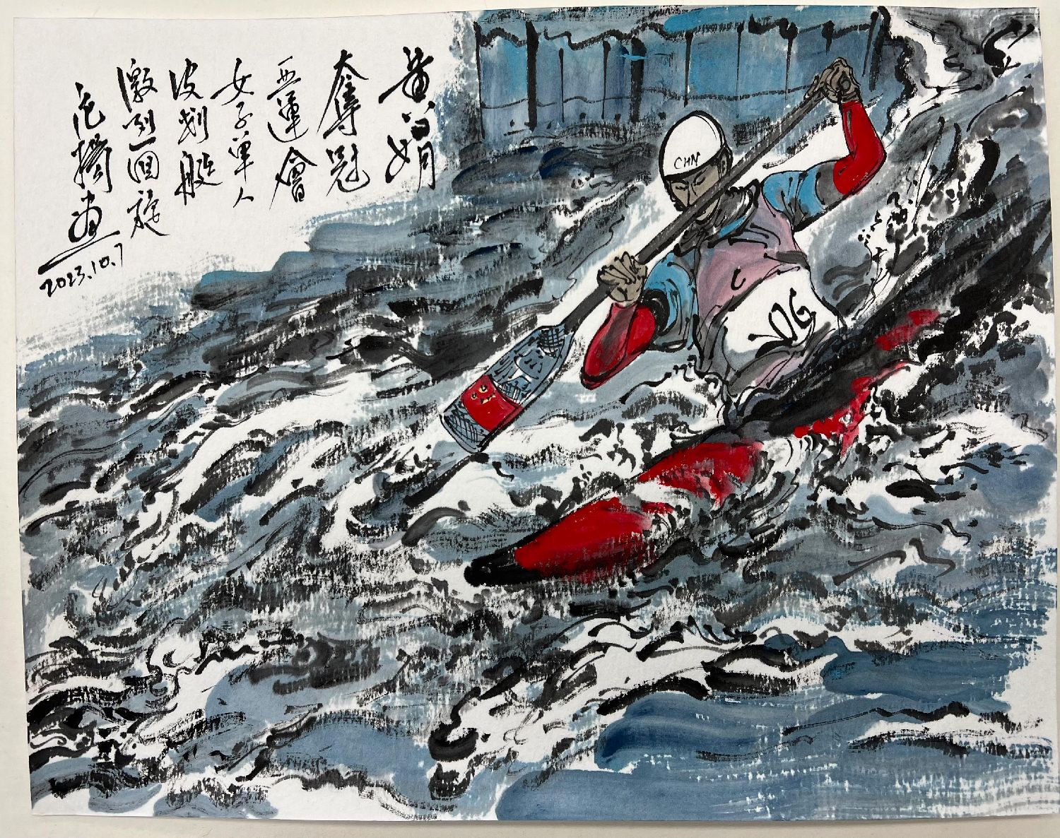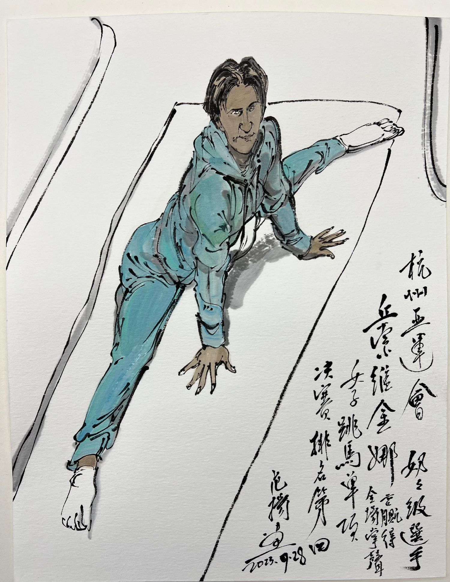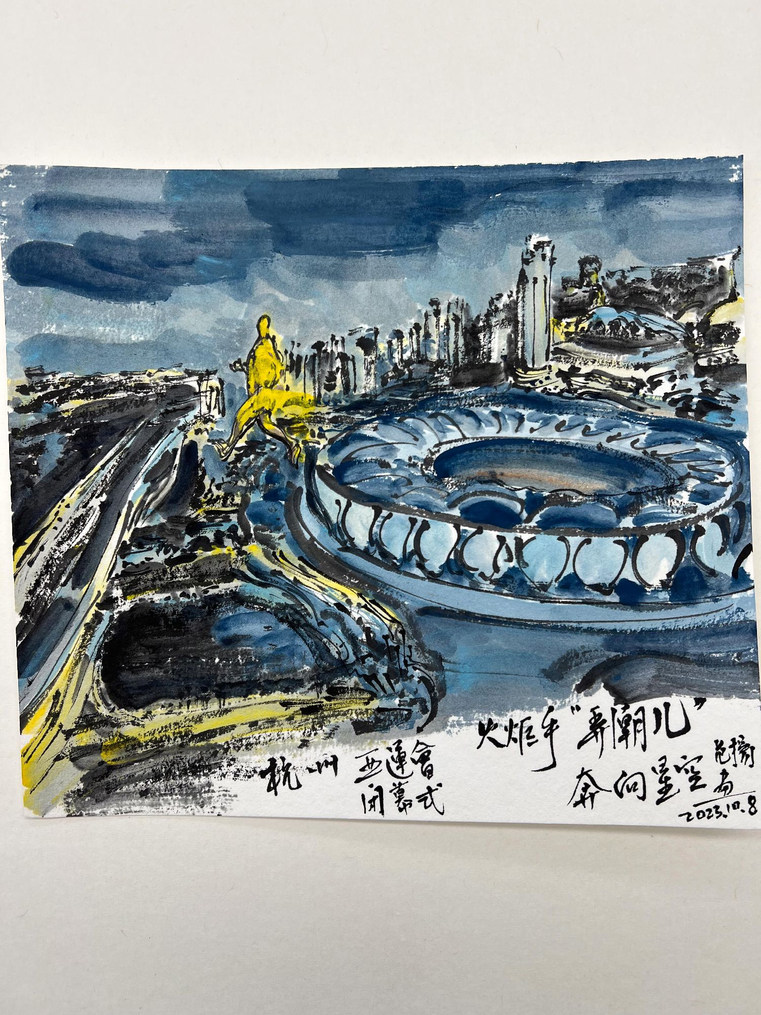 杭州亚运会的赛事精彩非凡,各国运动员有着卓越的表现,画家创作的作品也让人们再读赛事,重温激情时光。