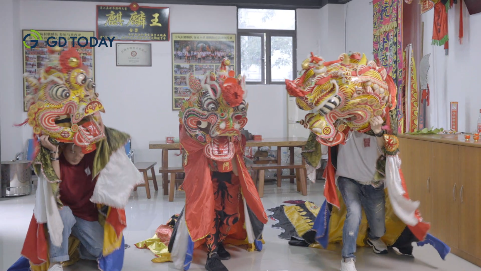 深圳市龙岗区甘坑村麒麟队师傅胡原发告诉学员,舞麒麟不同于舞狮或舞龙,麒麟头形似龙头,但独角,脚像牛蹄,身带鱼鳞,舞动时一人舞头,一人舞尾,配合默契。当中包含出洞、挠头、舔脚、寻青、采青、醉青、睡觉、拜等环节。