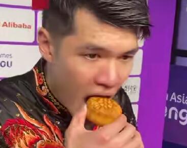 马来西亚武术选手陈思卫在比赛结束后,意外收到记者送来的月饼。他双手接过月饼,品尝后连说“好吃,这是第一次在中国吃月饼”。