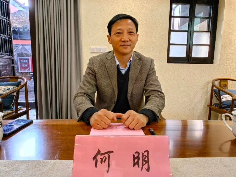 无锡市滨湖区委宣传部四级调研员、无锡市滨湖区文联秘书长何明座谈会上,无锡市滨湖区委宣传部四级调研员、无锡市滨湖区文联秘书长何明就联合举办书法展、大型书法公益活动,以中华瑰宝书法为媒,推广泰伯、泰伯庙景区等方面进行了交流。“我曾多次受邀参与梅村吴文化节,多次来泰伯庙。深入了解泰伯庙是第一次,为泰伯庙题字也是第一次。梅里是全球吴氏祖地,至德泰伯是江南始祖。能在吴文化发源地,学习泰伯精神,并以现场创作书法作品这样形式宣传泰伯精神、泰伯庙,我感到非常好,很有意义。虽然我的书法作品多次在全国、省、市获奖并入展,但是我希望我的作品能被海内外更多人认识认可,能够助力宣传推介泰伯、泰伯庙景区。”据悉,何明现为中国书法家协会会员,无锡市书法家协会副秘书长、理事,江南大学书画研究所研究员,王羲之书法研究会理事,江南书画院特聘书画家。其作品多次在《书法报》《书法导报》《中国书画报》、《名家书画报》《书画艺术》《中国书法家论坛》《中国财经时报》《美中报导》《意大利侨报》《欧洲侨报》《中国周报》等海内外期刊报纸上发表。新浪、搜狐、凤凰、今日头条、华人头条、中希网、意大利侨网等网络介绍过他的书法作品和学书经历。多幅书法作品被博物馆、图书馆、大专院校、党政机关、海内外友人收藏。