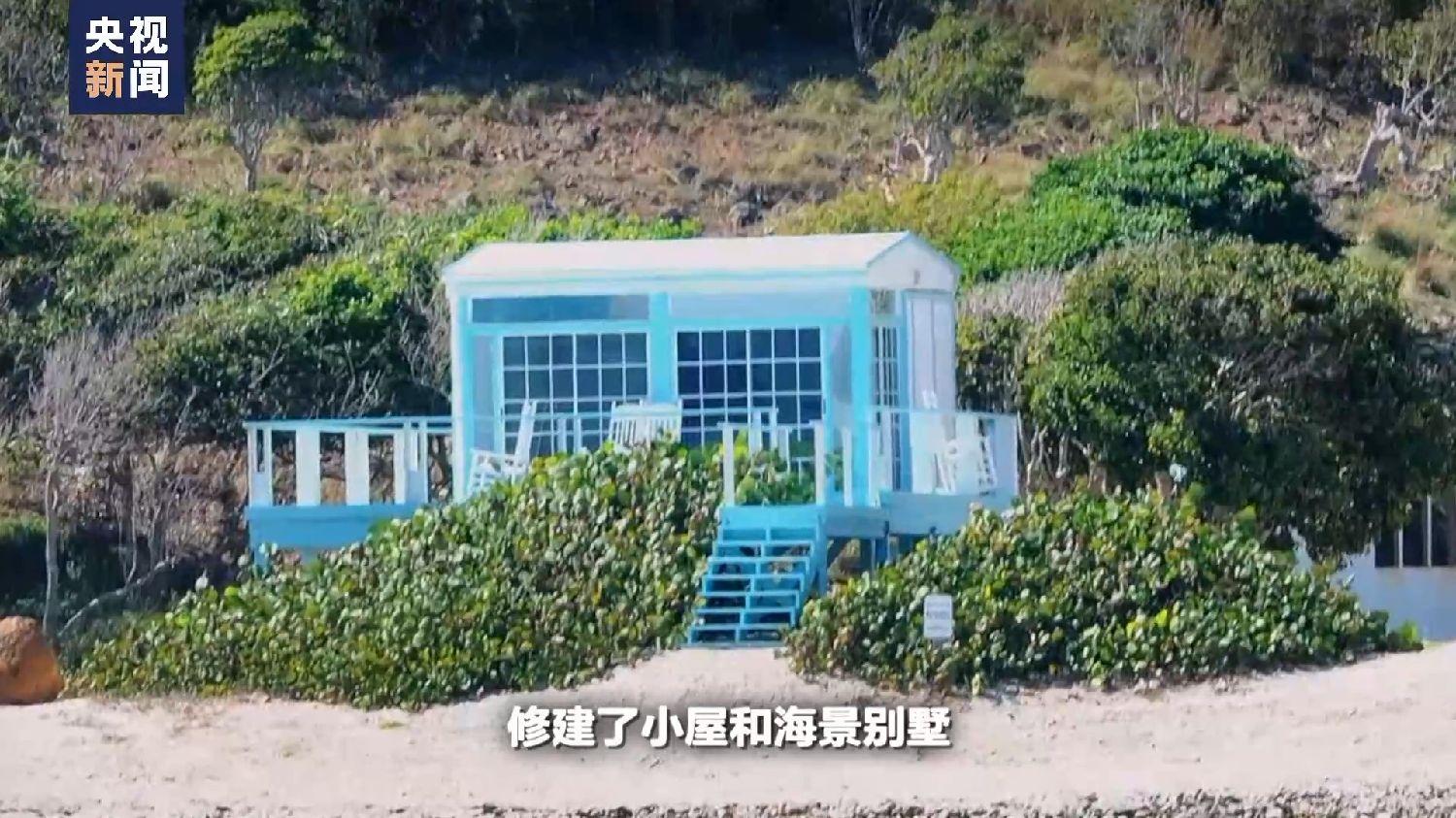 当地居民阿克利:这座岛有30多万平方米,爱泼斯坦先生在岛上修建了小屋和海景别墅。蓝色屋顶的那栋离海最近,是爱泼斯坦的私人住所,那边是主楼和客房,是供客人们居住的。