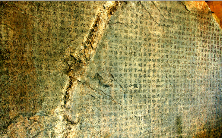 在云峰山散藏的40余处历代摩崖刻石中,刊刻于公元511至516年北朝时期的有21处,时间最长的跨越1510多年,另有宋、明、清等历代名刻。这些刻石以山势取之,由山麓散布到山顶,或矗立,或斜依,或偃卧,嵌空叠架,姿态各异,构成了天然碑林,千百年来墨香不绝。