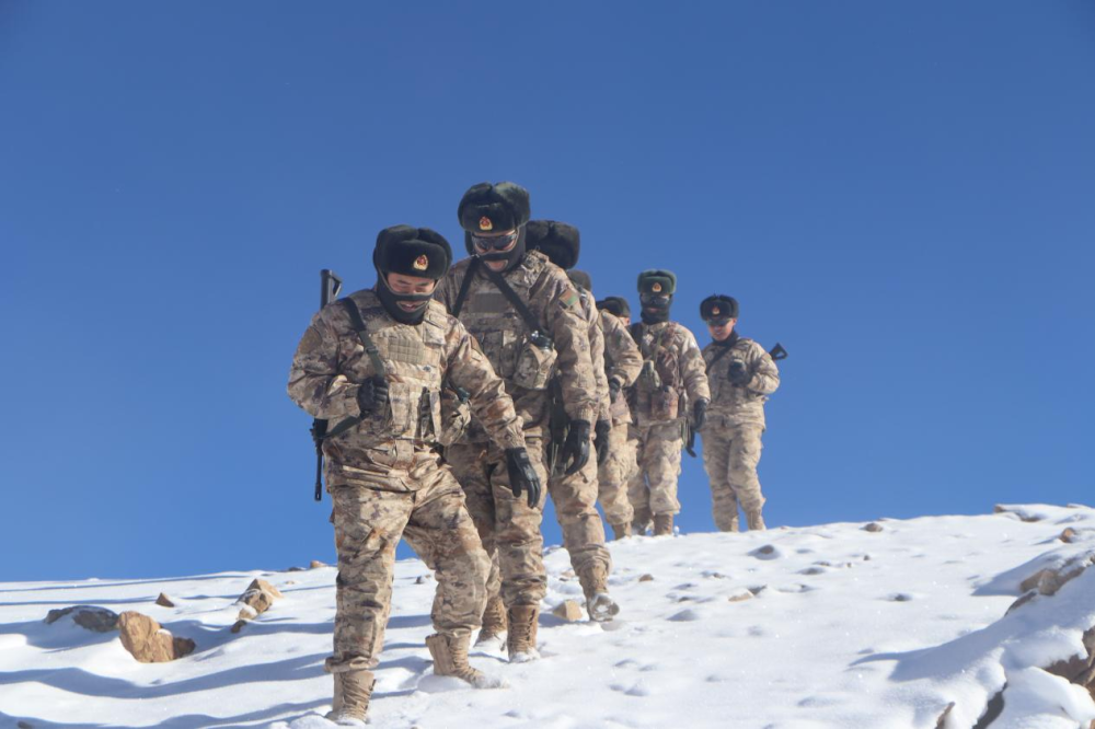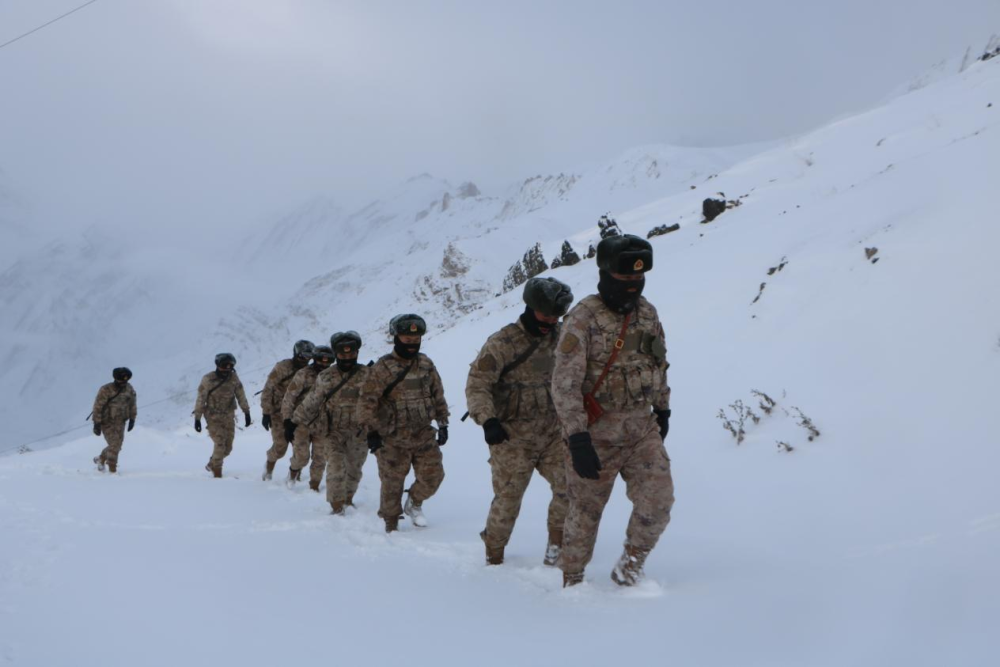“趟过最后那道冰河,翻过最后那架达坂……好男儿当兵就要走阿里……”途中,官兵们齐声唱起了《当兵走阿里》,激昂的歌声回荡在山谷里,飘向那寂静的风雪山口……