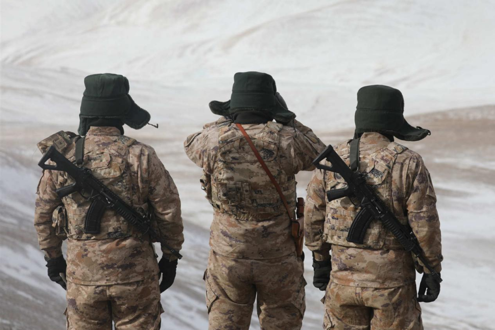 ↑阿里军分区萨让边防连官兵在海拔5400多米的点位巡逻。沈猷晋 摄