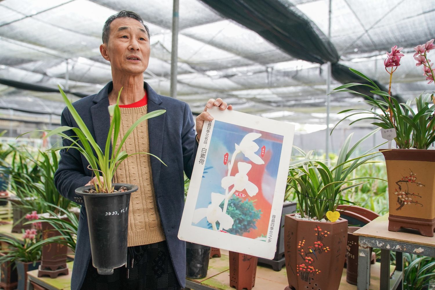 “这是墨兰、蕙兰、兜兰......这是白素荷,花瓣形似荷花,花色洁白,是难得的上品素花。”说起园子里的200多种兰花,叶国斌如数家珍。