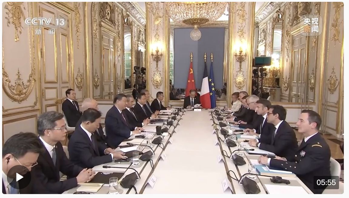 当地时间5月6日下午,国家主席习近平在巴黎爱丽舍宫同法国总统马克龙举行会谈。