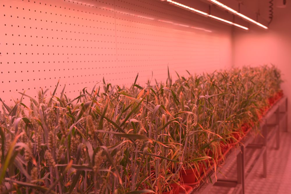 这是5月31日在位于河南新乡的中原农谷国家生物育种产业创新中心神农种业实验室人工气候室内拍摄的培养架上的小麦苗。(新华社记者刘力航 摄)