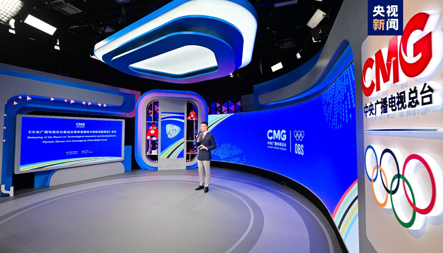 当地时间7月25日,《中央广播电视总台奥运会赛事直播技术创新发展报告》中文、英文、法文等多语种版本在巴黎发布。中宣部副部长、中国中央广播电视总台台长慎海雄与奥林匹克转播服务公司首席执行官伊阿尼斯·埃克萨科斯在巴黎奥运会国际广播中心总台前方演播室共同见证报告发布。