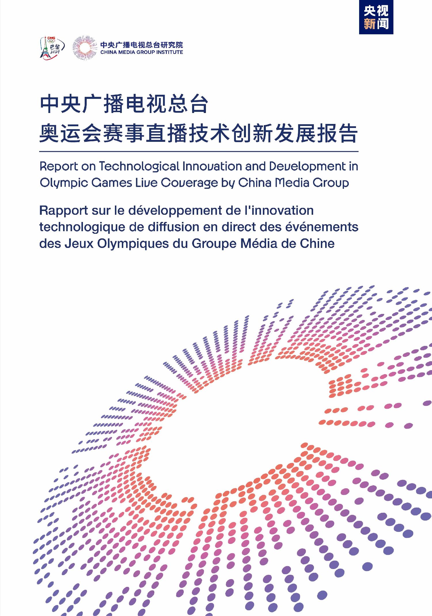 由总台研究院编写的《中央广播电视总台奥运会赛事直播技术创新发展报告》中文版全文2.4万字,共7个章节,详细阐述了总台在超高清技术、5G、人工智能、特种设备、云技术、虚拟技术以及音频技术等领域的创新发展历程,系统分析了总台以技术实践重塑奥运叙事,展望了未来媒体技术与体育赛事融合的无限可能。