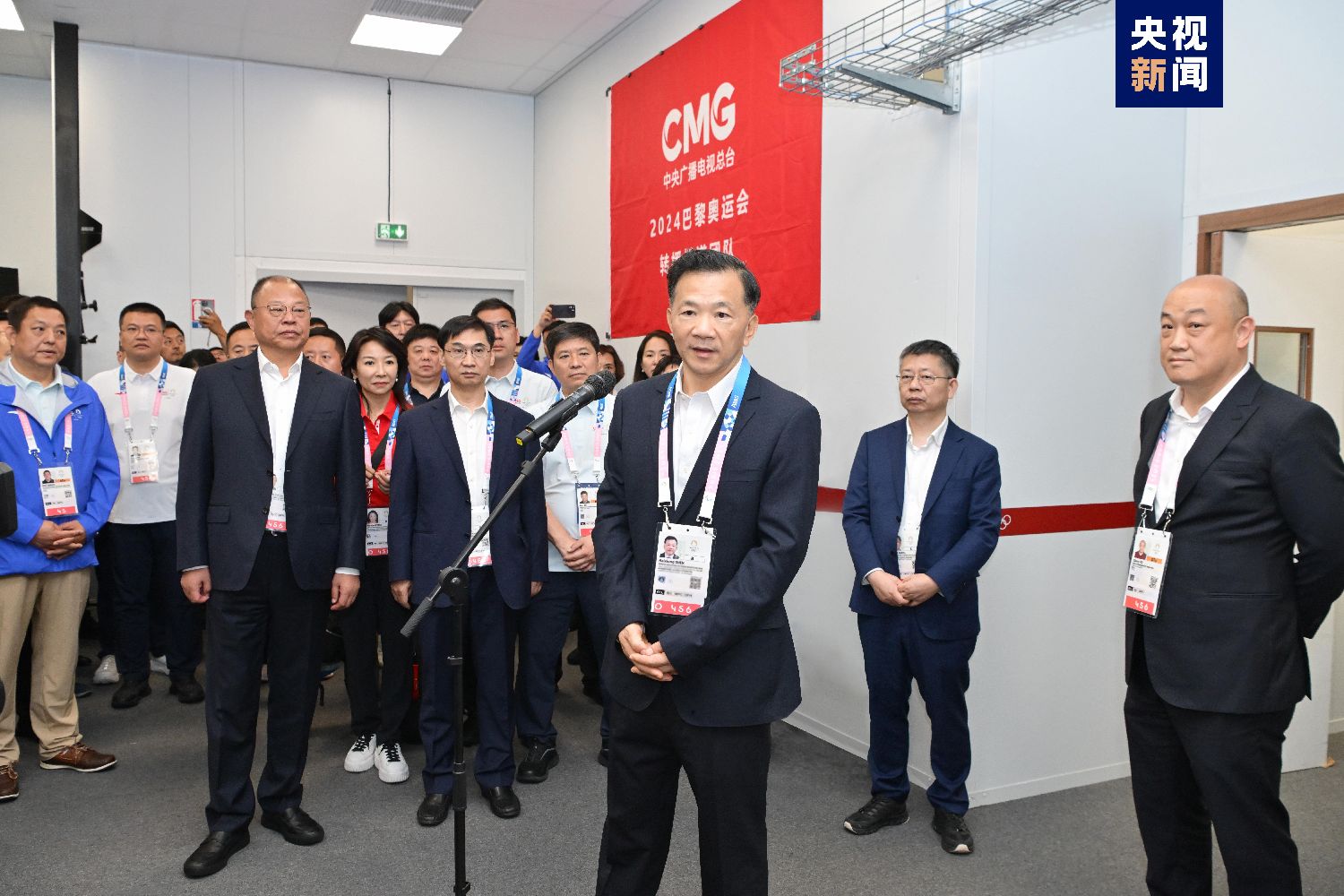 慎海雄和伊阿尼斯·埃克萨科斯一行先后前往巴黎奥运会国际广播中心总台工作区和体育频道演播室,看望慰问总台巴黎奥运会前方报道和为国际奥委会OBS提供转播服务的工作人员,并交流开幕式转播报道准备情况。