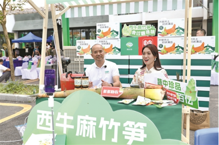 近日,2024年西牛麻竹笋·尝鲜季活动在清远举行。脆笋豆干炒酿尖椒、笋衣火腩清焖青头鸭、鱼子酱麻竹笋……现场既有麻竹笋一桌菜,也有各式麻竹笋精加工、精包装产品,清远市农业农村局副局长李敏怀还现身直播间,向近十万网友推介包括鲜笋、笋丝、笋片等15件商品。