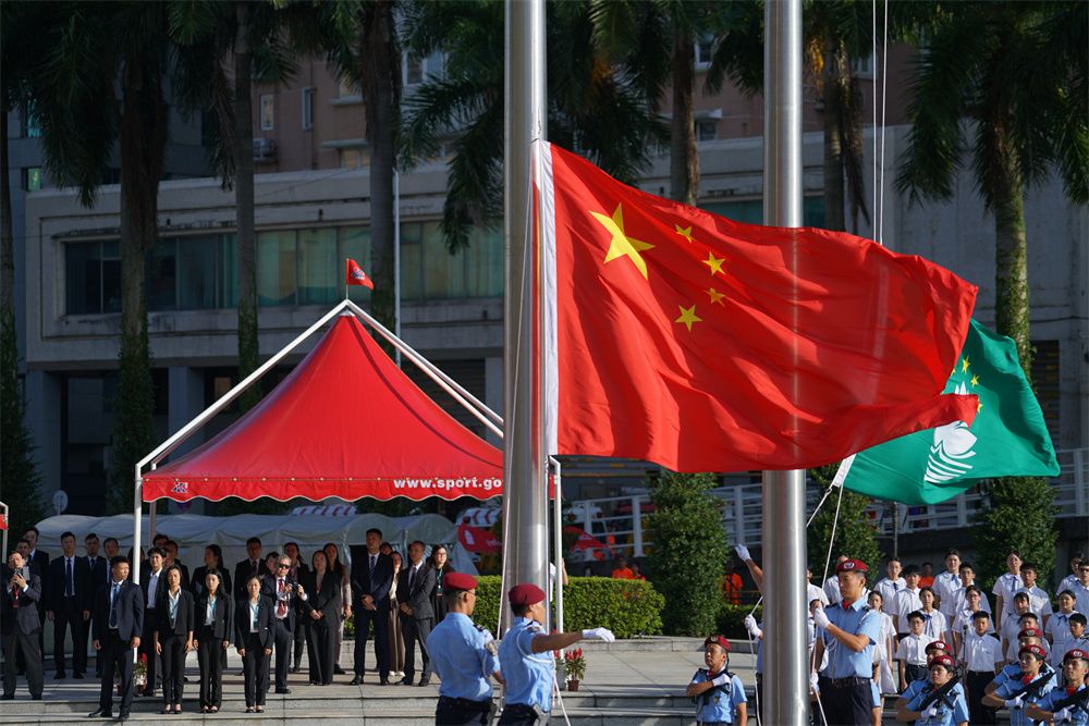 10月1日,澳门特区政府在金莲花广场举行升旗仪式,庆祝中华人民共和国成立75周年。(图片来源:本文图片均自中新社)