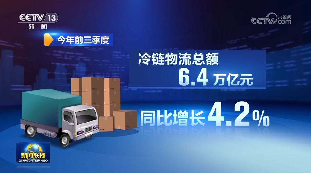 中国物流与采购联合会的最新数据显示,今年前三季度,冷链物流总额为6.4万亿元,同比增长4.2%。其中,三季度增长4.5%,比二季度加快0.8个百分点。