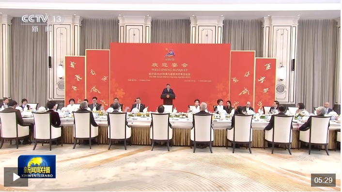 2月7日中午,国家主席习近平和夫人彭丽媛在黑龙江省哈尔滨市太阳岛宾馆举行宴会,欢迎来华出席哈尔滨第九届亚洲冬季运动会开幕式的国际贵宾。