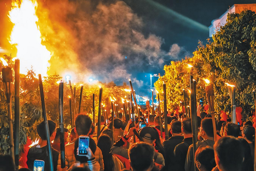 “今年光是售出火把都有1.2万把。还有极大一部分是自带火把,或者不拿火把参与巡游的。”忠平社年例民俗相关负责人说。