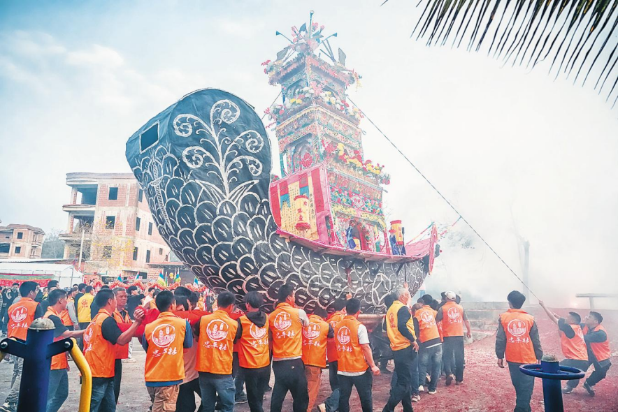 “我们提前一个月就开始制作花船,一是要牢固,耐得住一整天的摇花船,二要美观震撼。”忠平社年例民俗相关负责人说。