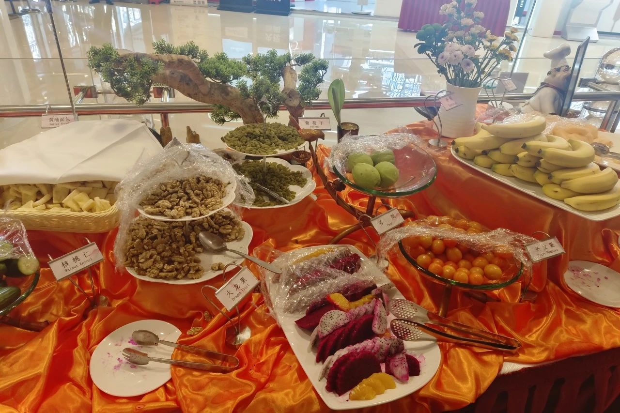 工作人员介绍,今年茶歇处在传统甜点的基础上,新增了三明治、蒜香面包等咸口点心,满足不同口味的需求。水果种类也更加丰富,有整果也有果切。网红冰糖葫芦成为记者们的“新宠”,晶莹剔透,酸甜可口,在忙碌的工作中,带来一丝甜蜜的慰藉。