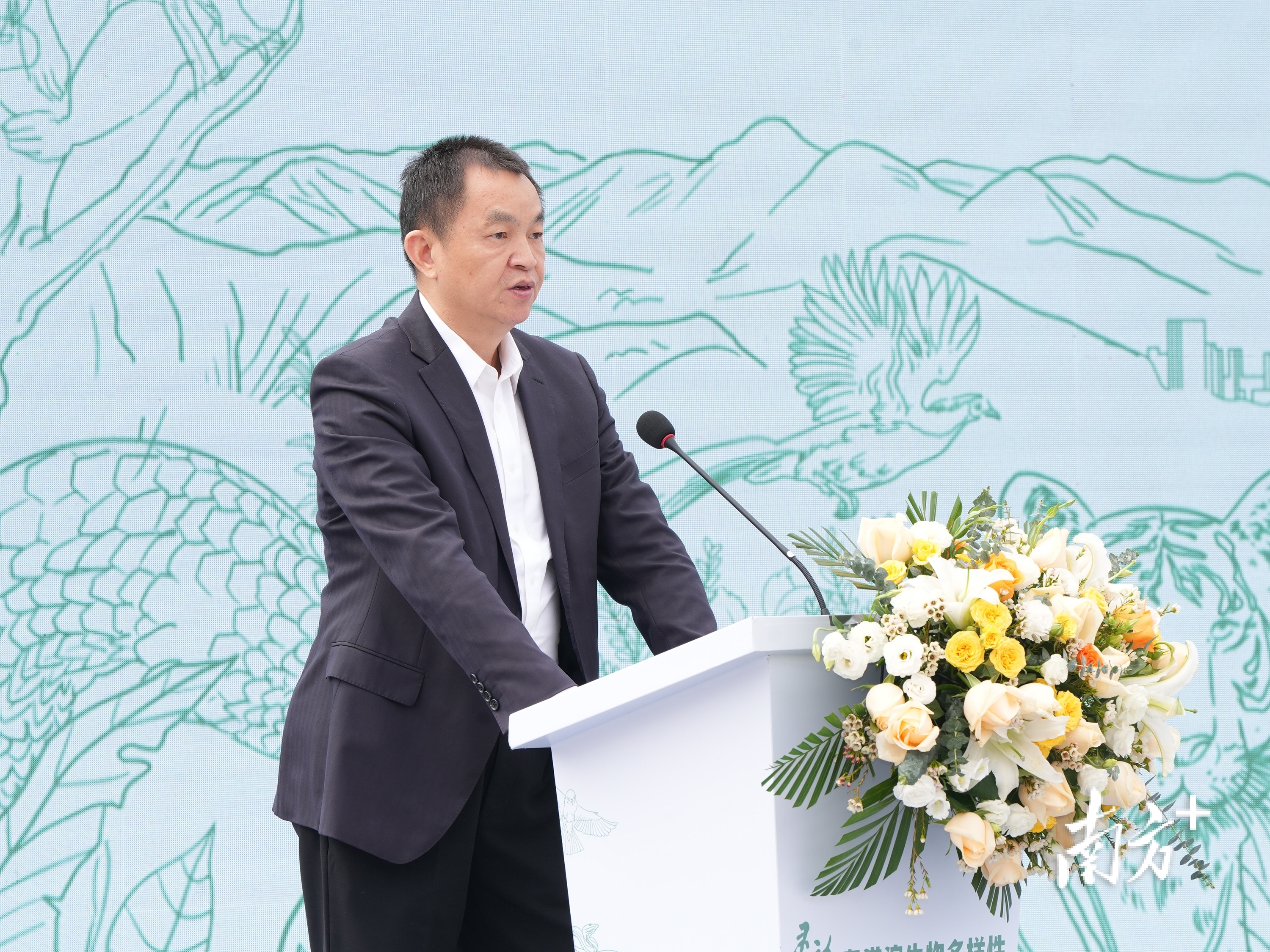 广东省人民政府新闻办公室副主任邓鸿出席摄影展并致辞。他提出,粤港澳大湾区不仅拥有极具活力的创新经济生态,还呈现出丰富的生物多样性,在美丽中国建设全局中地位重要、作用突出、影响深远。