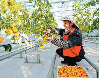 2024年12月19日,江西省瑞昌市高标准设施蔬菜示范中心,工人正在采摘西红柿。魏东升摄(人民视觉)