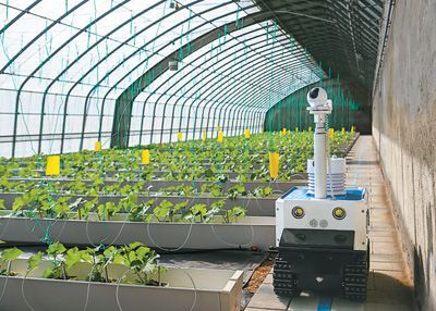 3月21日,无人巡检机器人在天津一家智慧农业园区内巡控。新华社记者 孙凡越摄