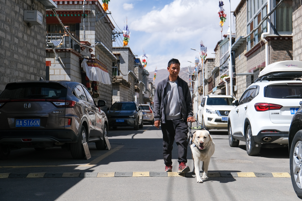 “刚到拉萨的时候,福橘对这里的环境不太熟悉,比如遇到了横在人行道上的电动车,犹豫不知道怎么通过,但鼓励它后,它会观察并提示我。”达琼说,主人和导盲犬之间要充分信任、配合,如此出行才会更加顺利。