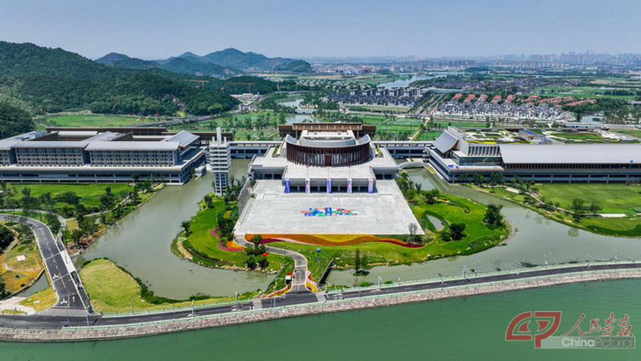 航拍第四届中国—中东欧国家博览会举办地宁波国际会展中心。(图片来源:宁波市委宣传部)