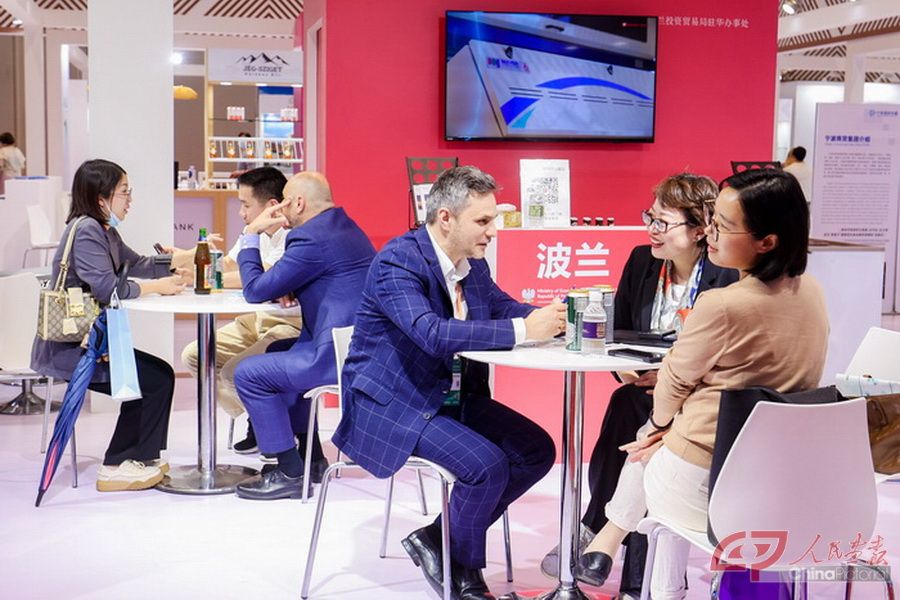 第三届中国—中东欧国家博览会上,中外参展代表交流沟通。(图片来源:宁波市委宣传部)